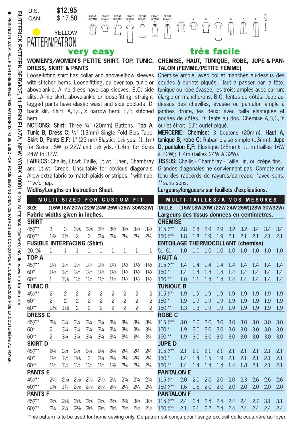 B3039 Femme/Petite Femme - Chemisier, haut, tunique, robe, jupe et pantalon (Grandeur : 22W-24W-26W)