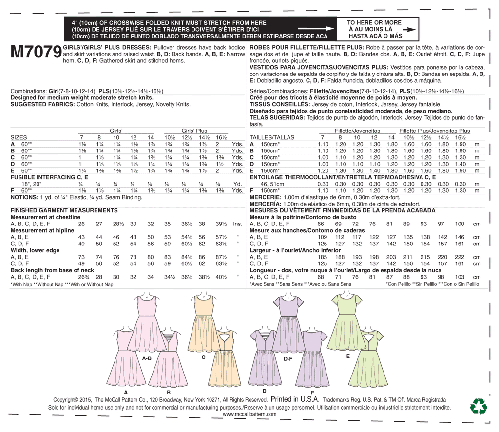 M7079 Robe - Fille/Fille plus (Grandeur : 10.5 - 12.5 - 14.5 - 16.5)