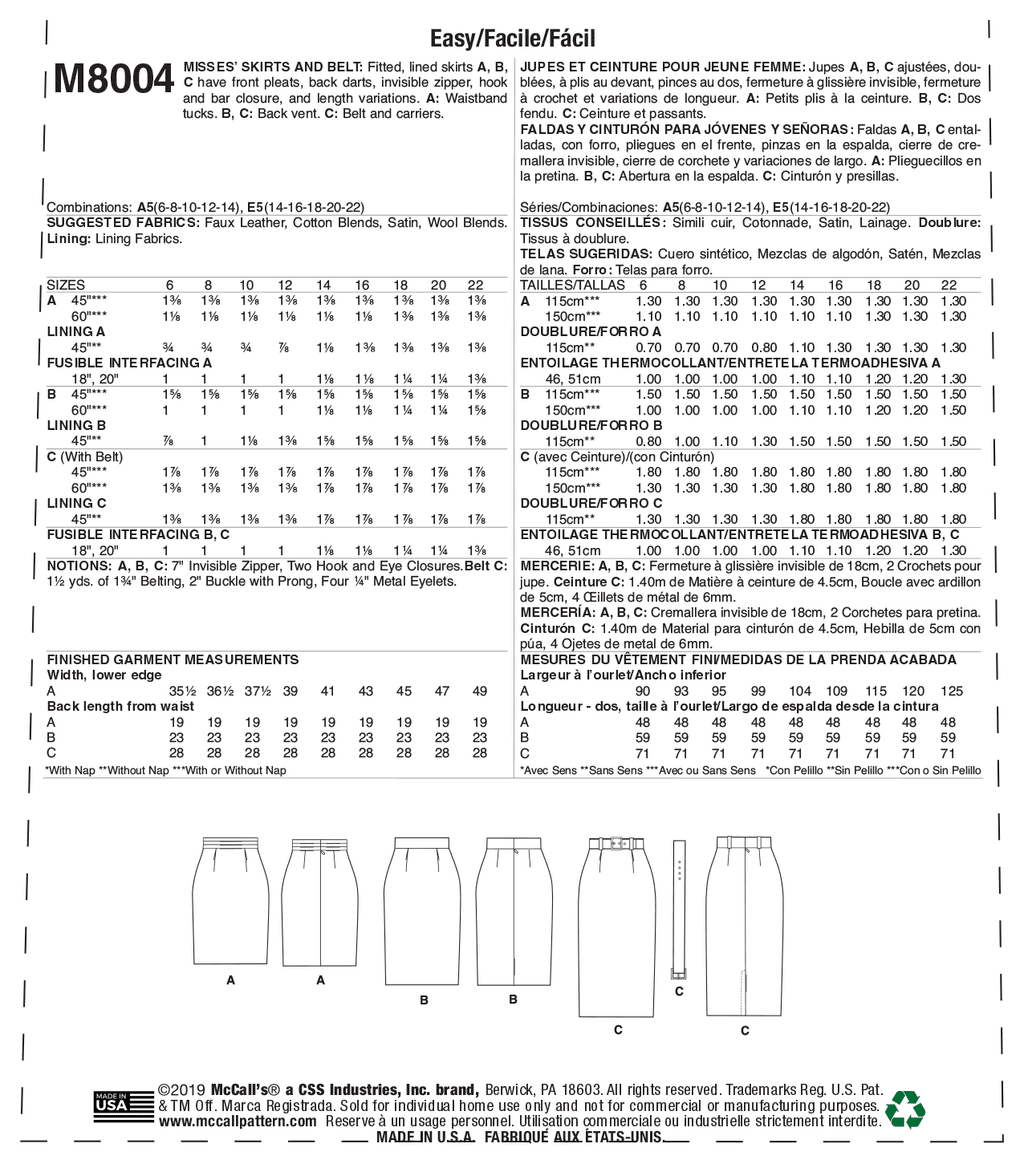 M8004 Jupes et ceinture pour Jeune Femme (grandeur : 14-16-18-20-22)