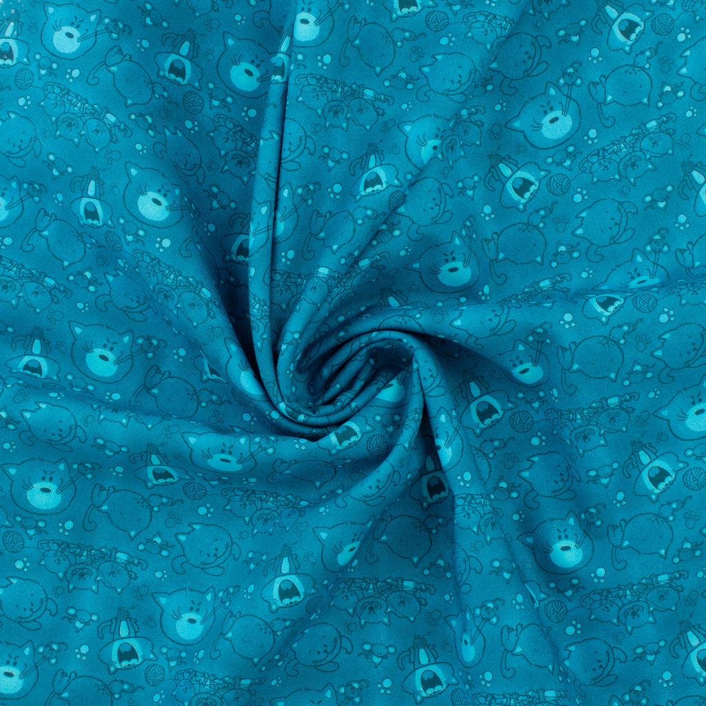 Coton imprimé - <CAT HAIR DON'T CARE> - 005 - Bleu