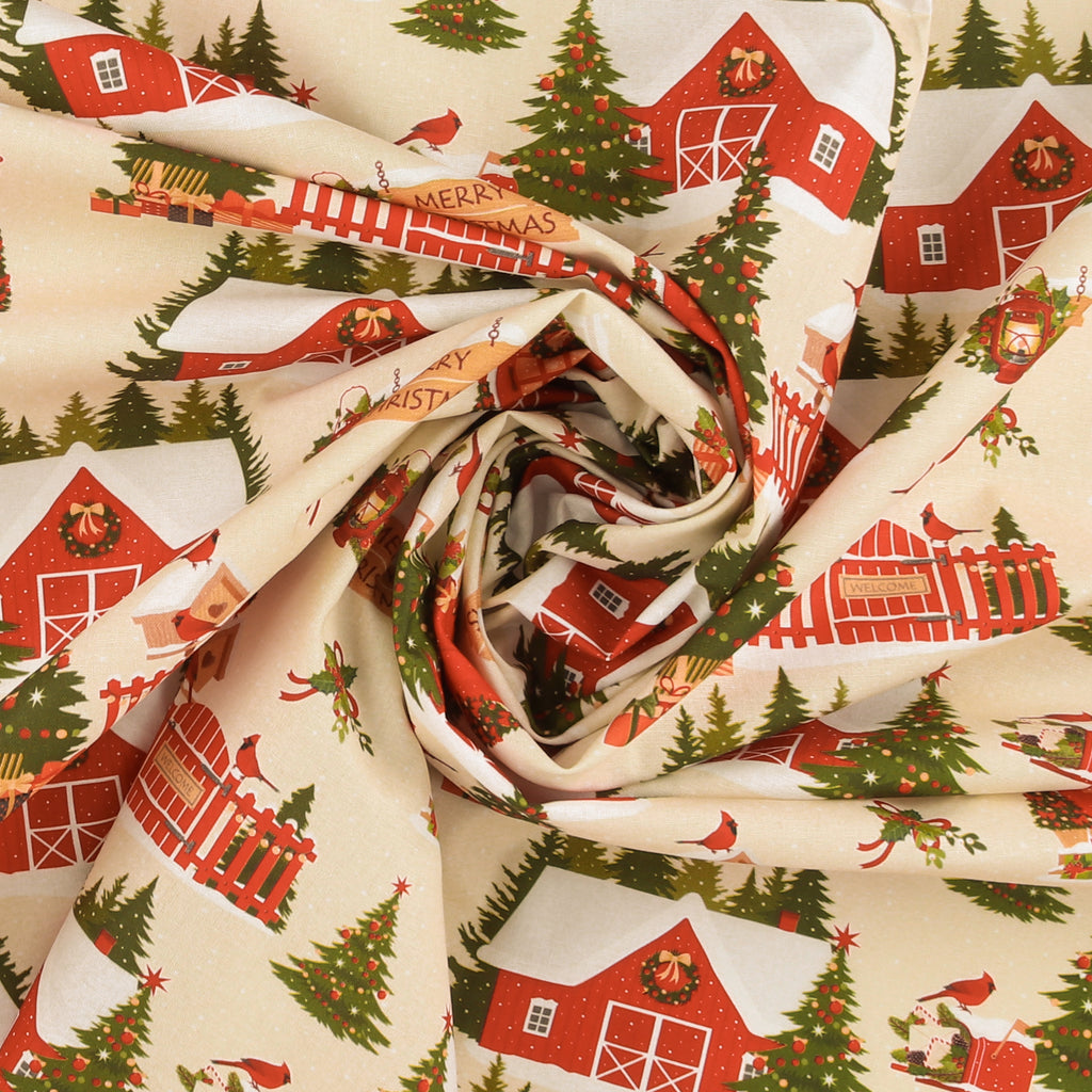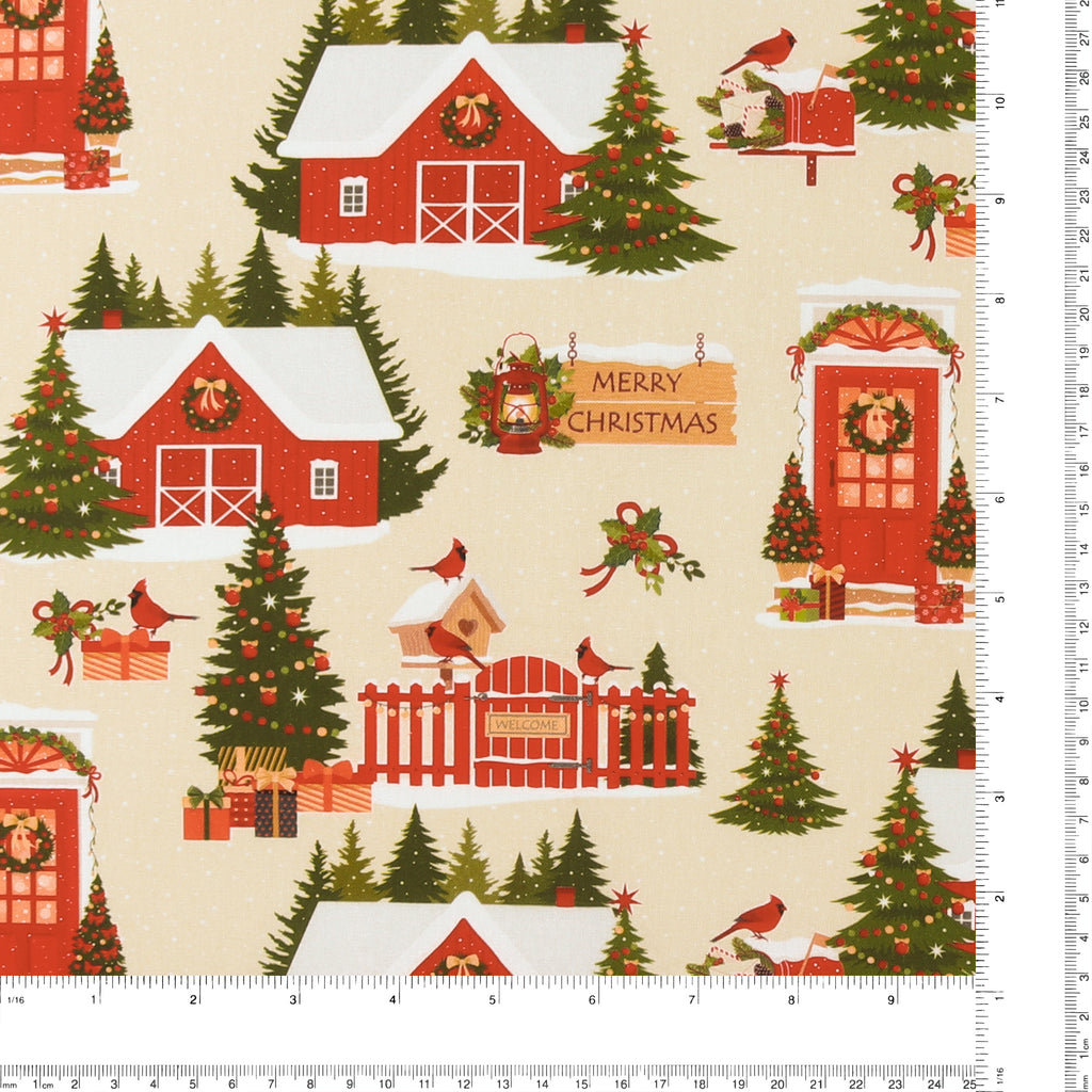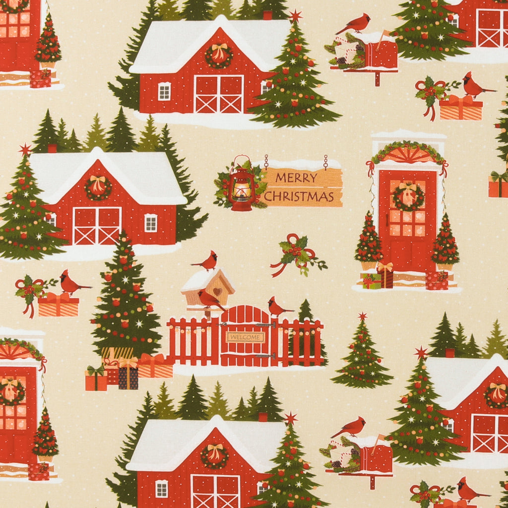 Coton imprimé - Tradition des Fêtes - 010 - Crème