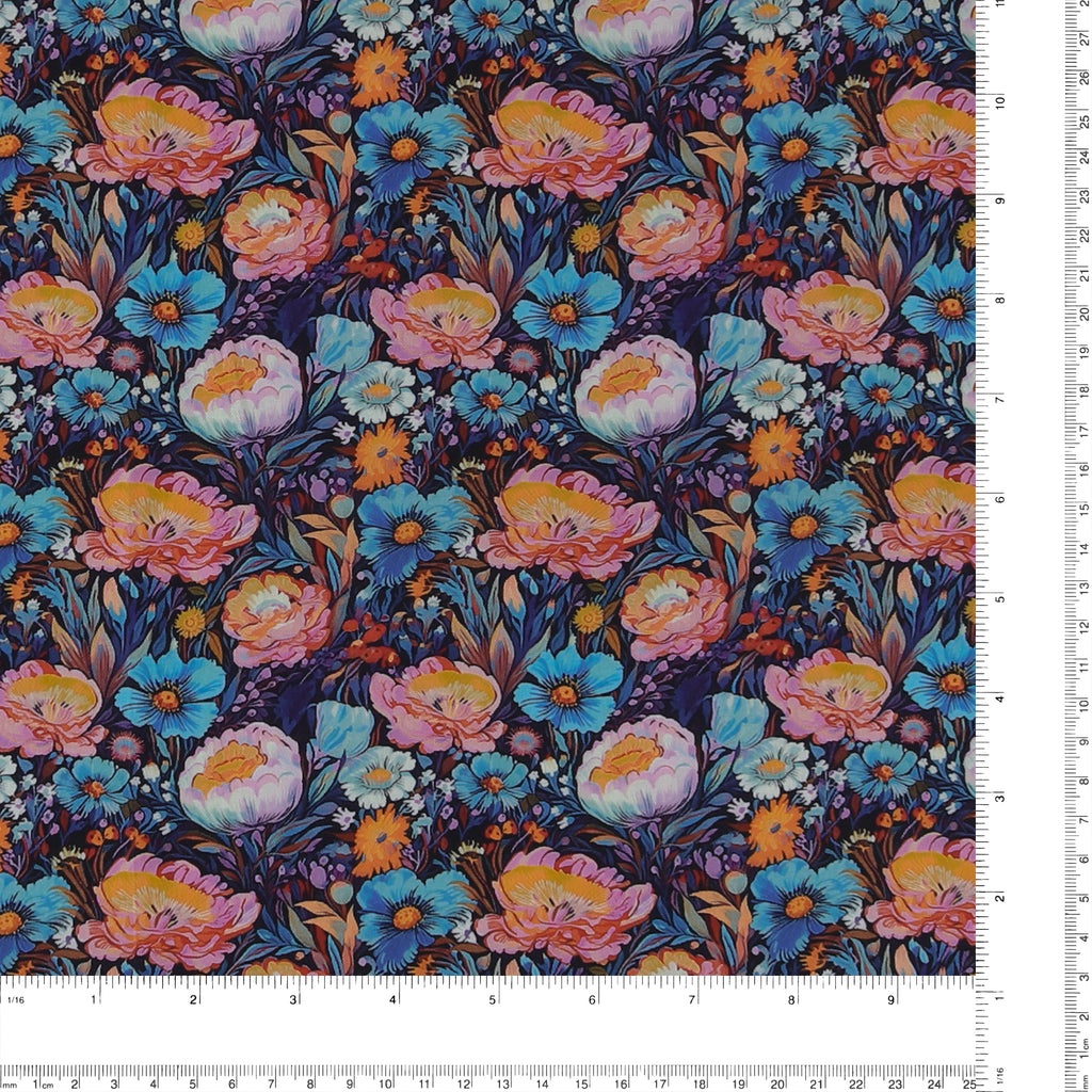 Coton imprimé - Charme floral - 008 - Marine