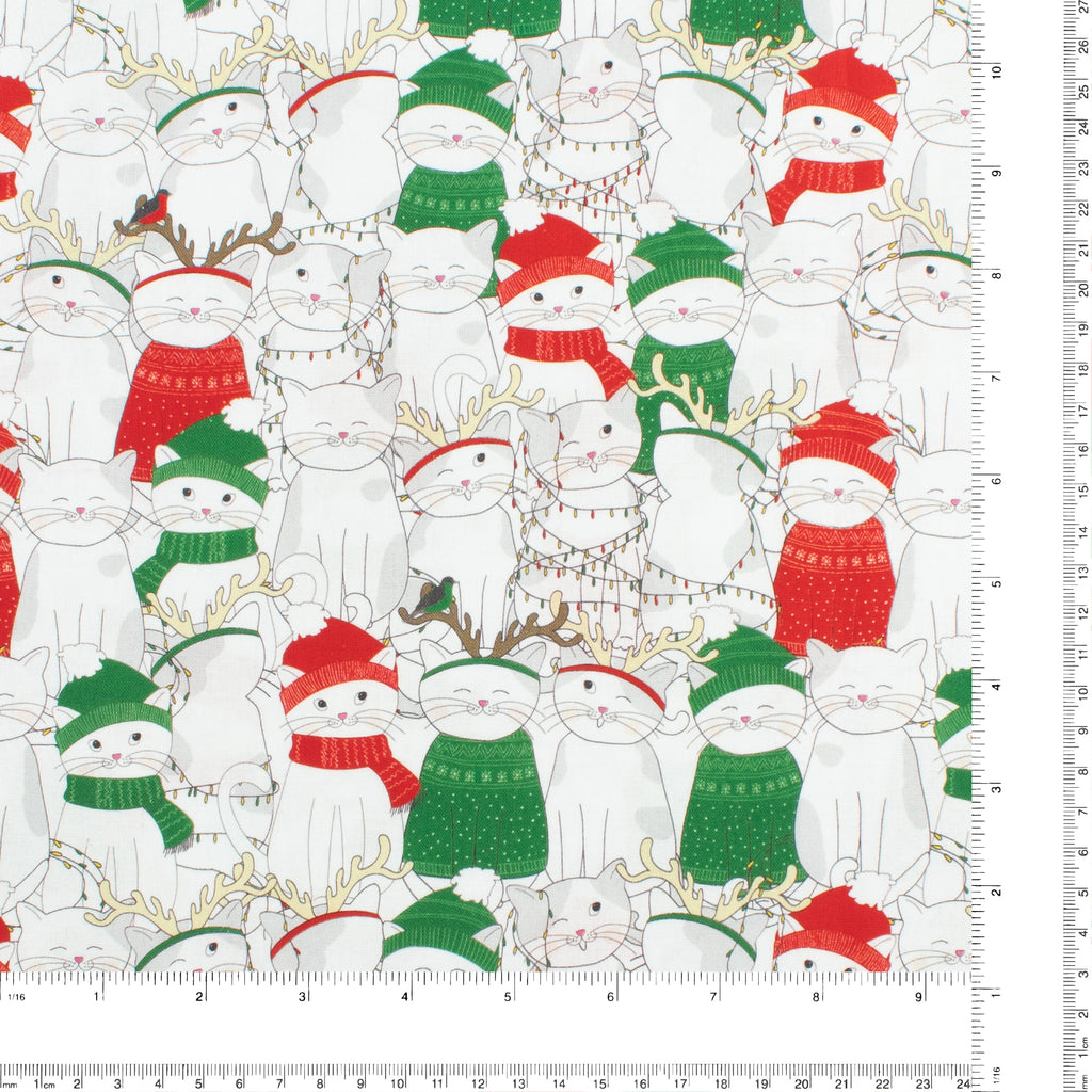 Coton imprimé - Noël des animaux II - 004 - Blanc
