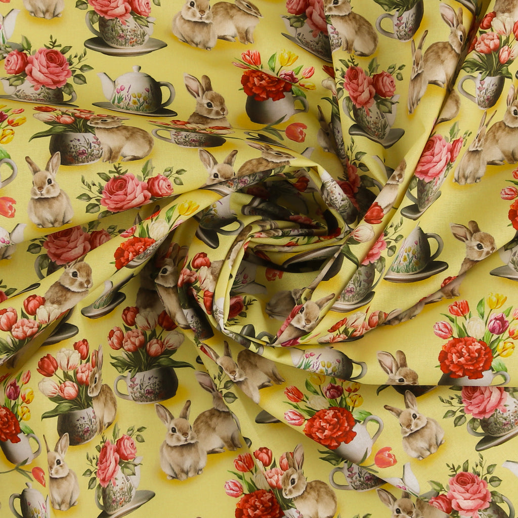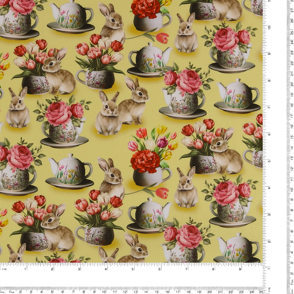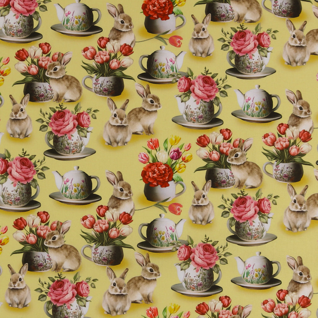 Coton imprimé - Prendre le thé - 003 - Jaune Vif