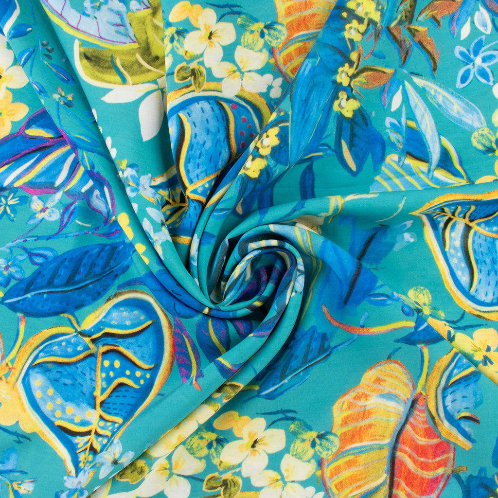 Popeline de rayonne imprimée - <MILA> - 008 - Aqua