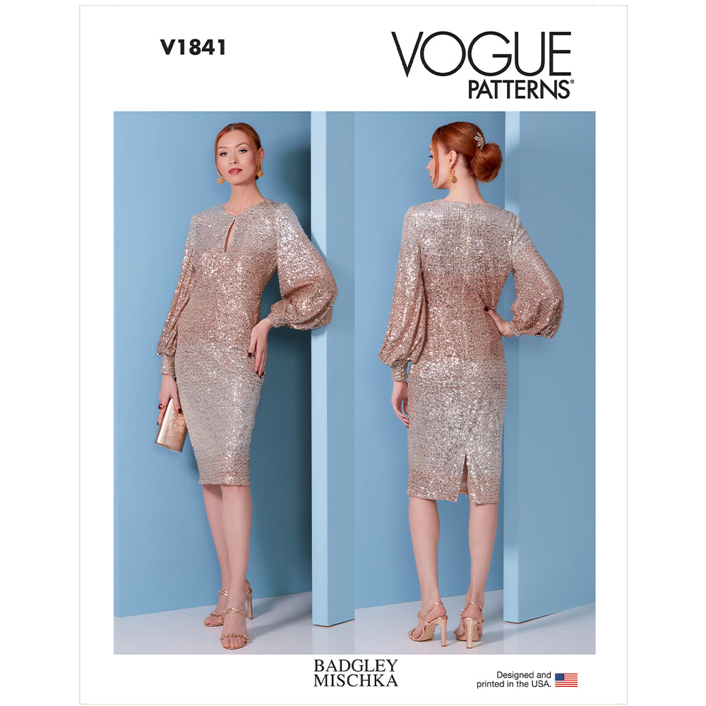 Robe ajustée et doublée avec couture à  la taille surélevée, manches évasées se terminant par des poignets avec fermeture à  bouton et boucle de biais, doublure contrastée, encolure et passepoil à  l'ourlet. Des pièces de patron séparées sont incluses pour les tailles de bonnet A, B, C, D.