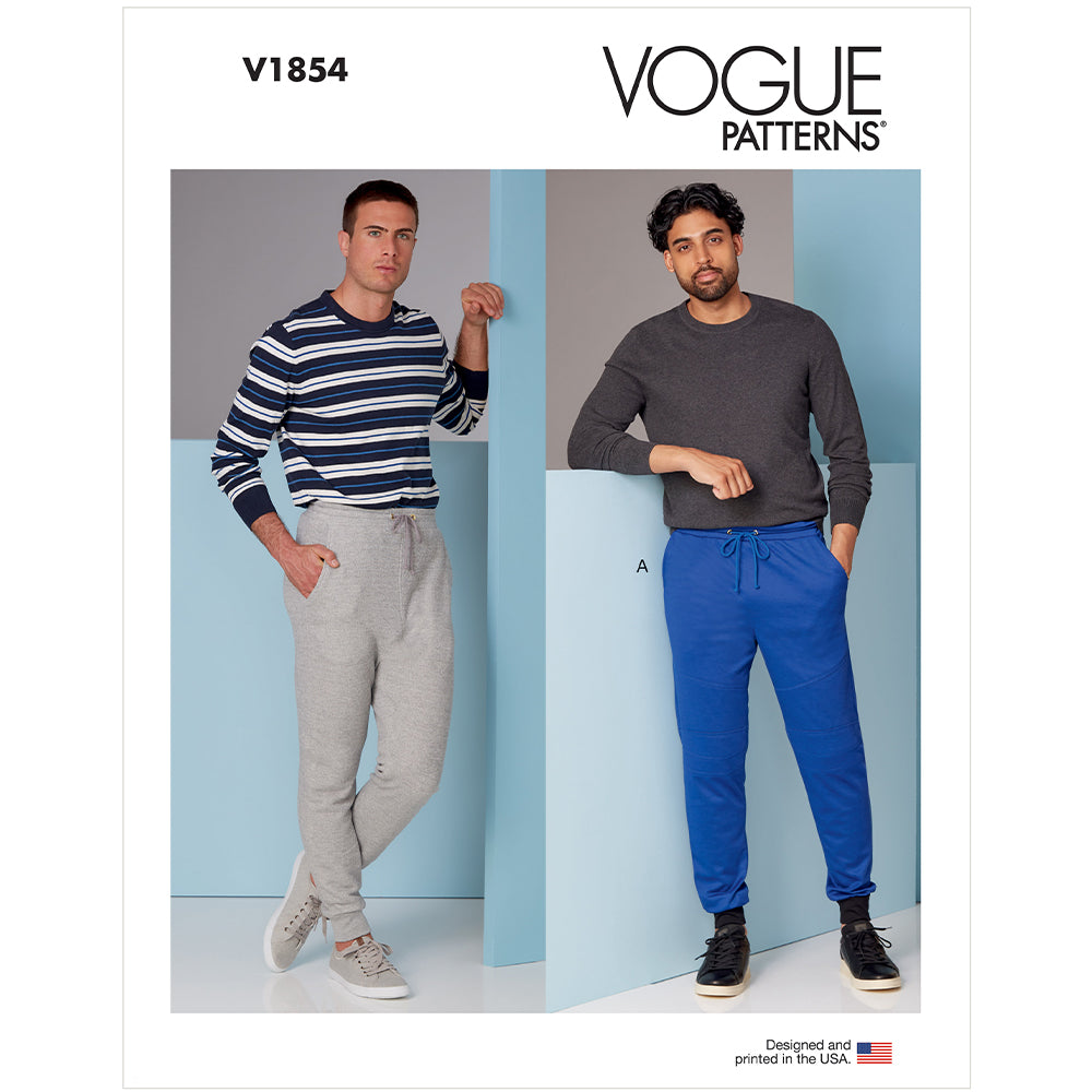 Pantalon de jogging ajusté à  jambe fuselée avec poignets en tricot côtelé, taille élastiquée avec cordon de serrage, poches latérales sur le devant, couture à  l'arrière de la jambe. Le modèle A présente des empiècements surpiqués au genou.