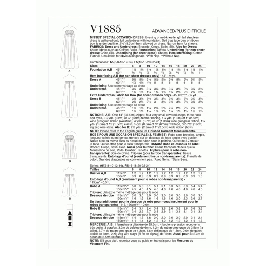 Vintage Vogue vers 1966, la robe bustier pleine longueur de soirée ou mi-genou est froncée sur une sous-robe complète avec fond de teint. L'arc de tube ou l'arc de ruban est sous la poitrine. Ourlet de 2 1/4 po autorisé sur la robe. Ourlet étroit pour les voilages. Compétence en couture : Avancé.