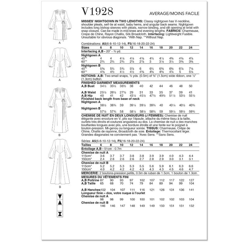 V1928 Chemise de nuit pour femme (16-18-20-22-24)
