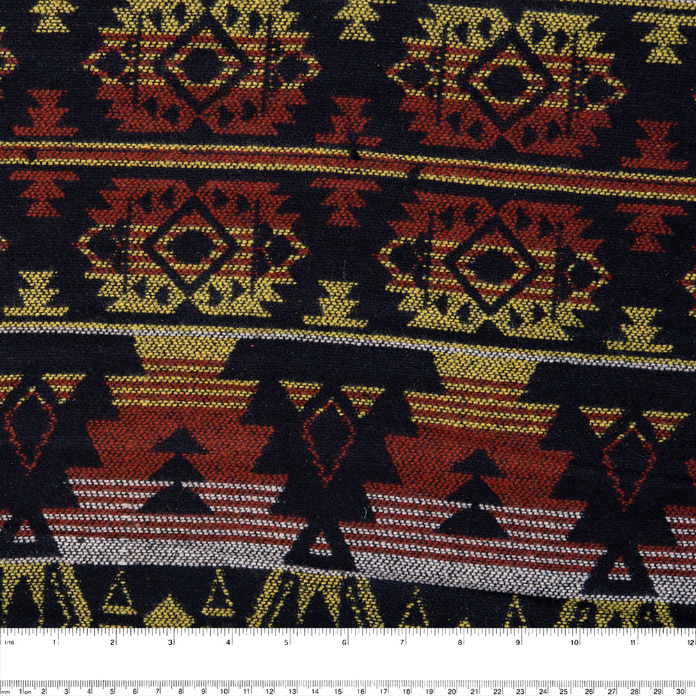 Tissu fil teint pour manteau - NAVAJO - Noir / Jaune / Brun