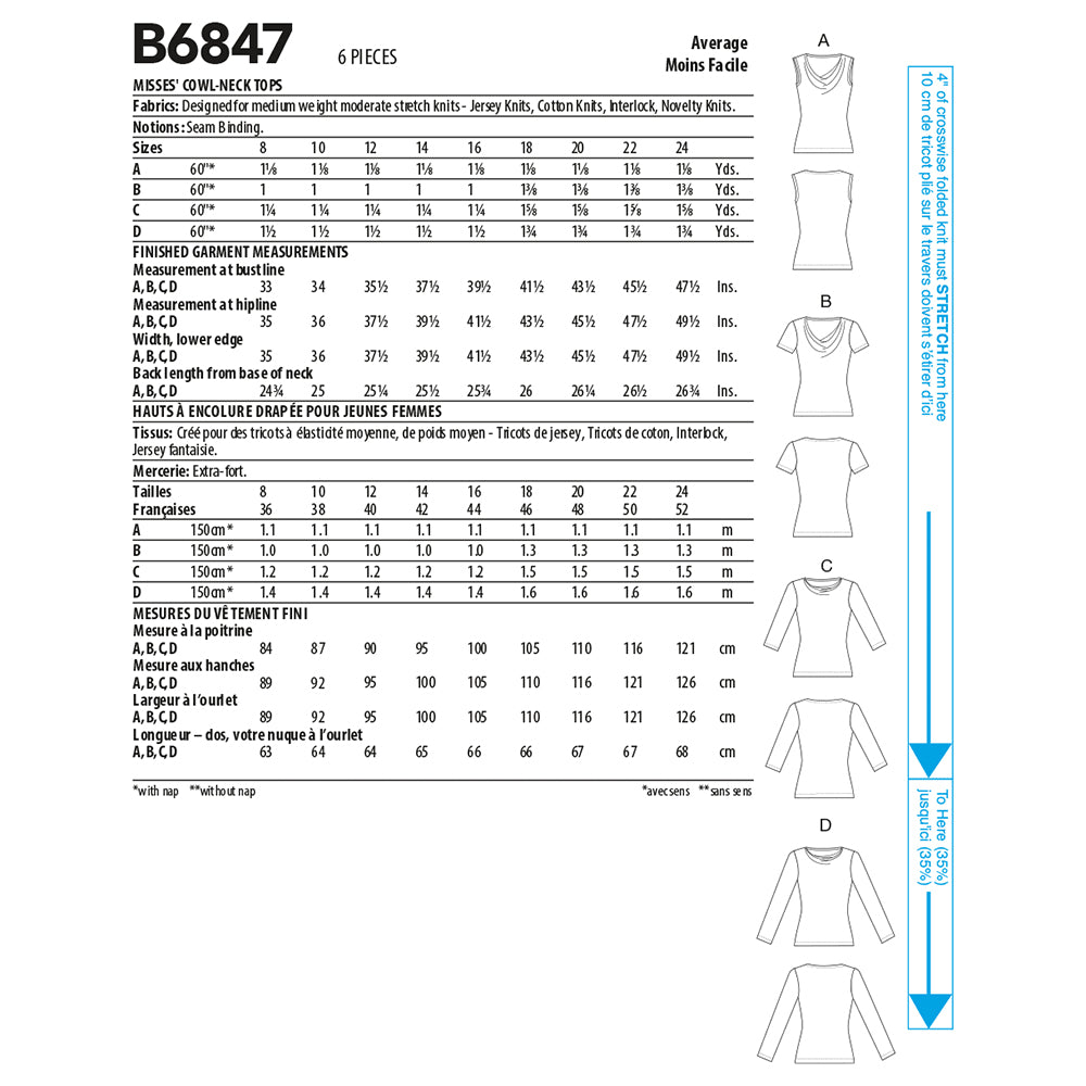 B6847 MISSES' COWL-NECK TOPS (size: 16-18-20-22-24)