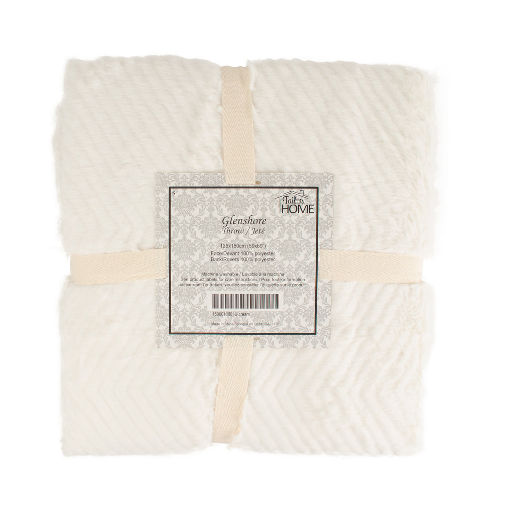 Decorative Chevron Embossed fur throw - Cream - 50 x 60''