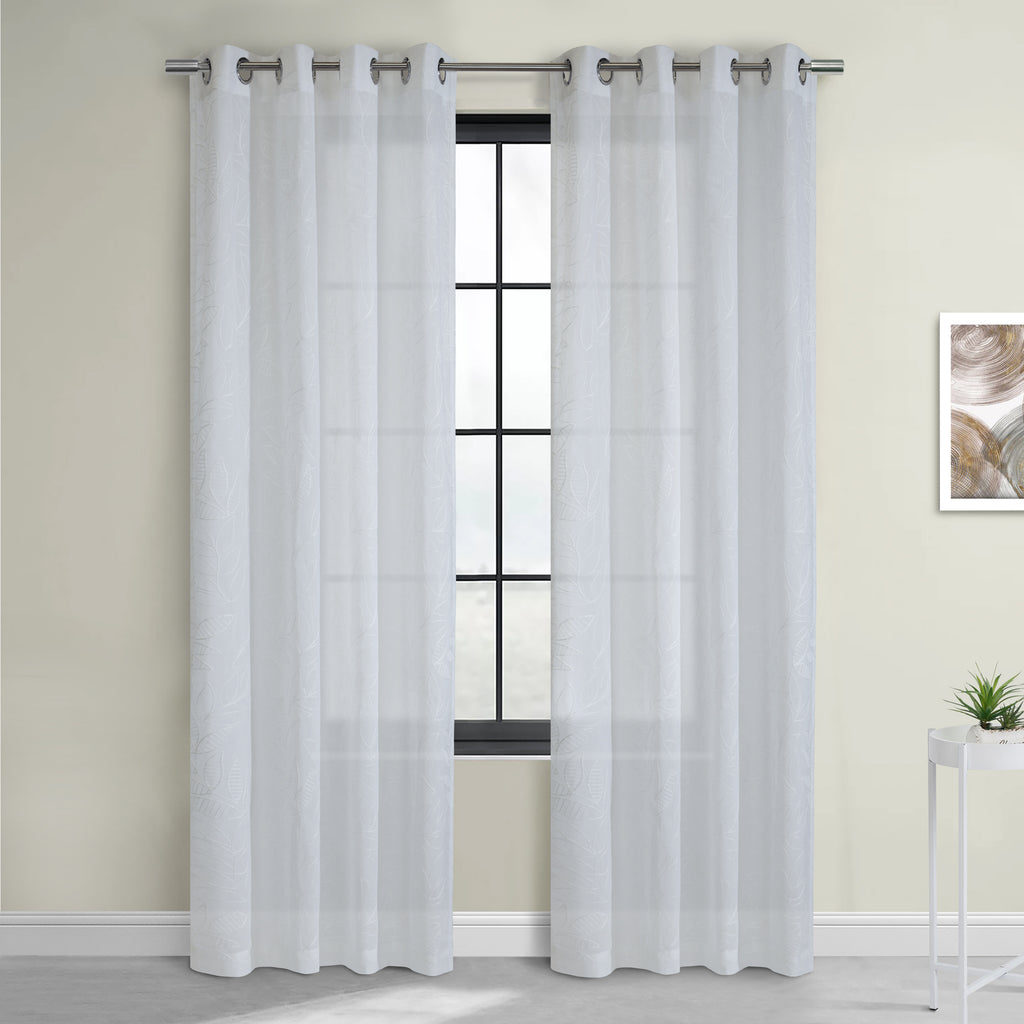 This sheer curtain allows daylight into the room while conserving some privacy. Grommets allow the curtain to slide easily along the rod.