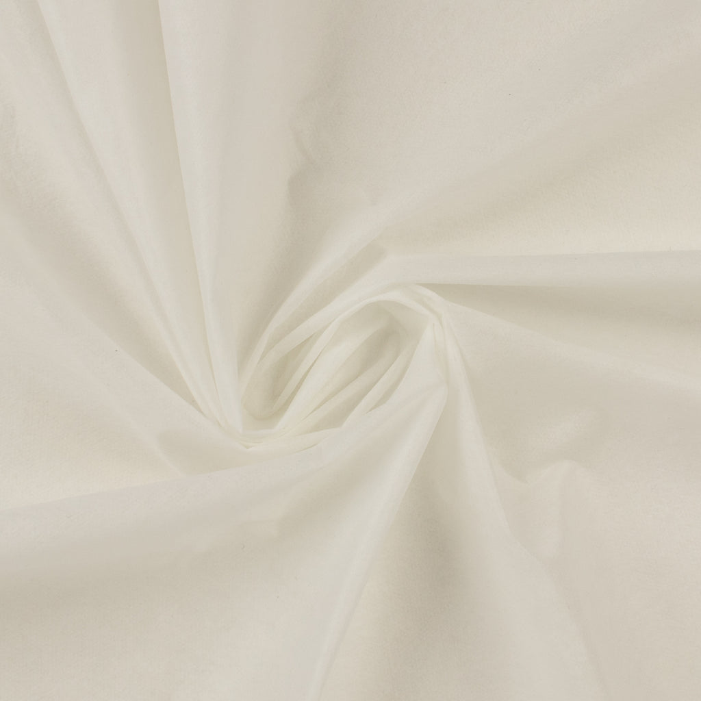 Fusible soft tricot knit interfacing with cross stitch weave for soft tailoring and draping. Suitable for light weight to medium weight woven and knit.