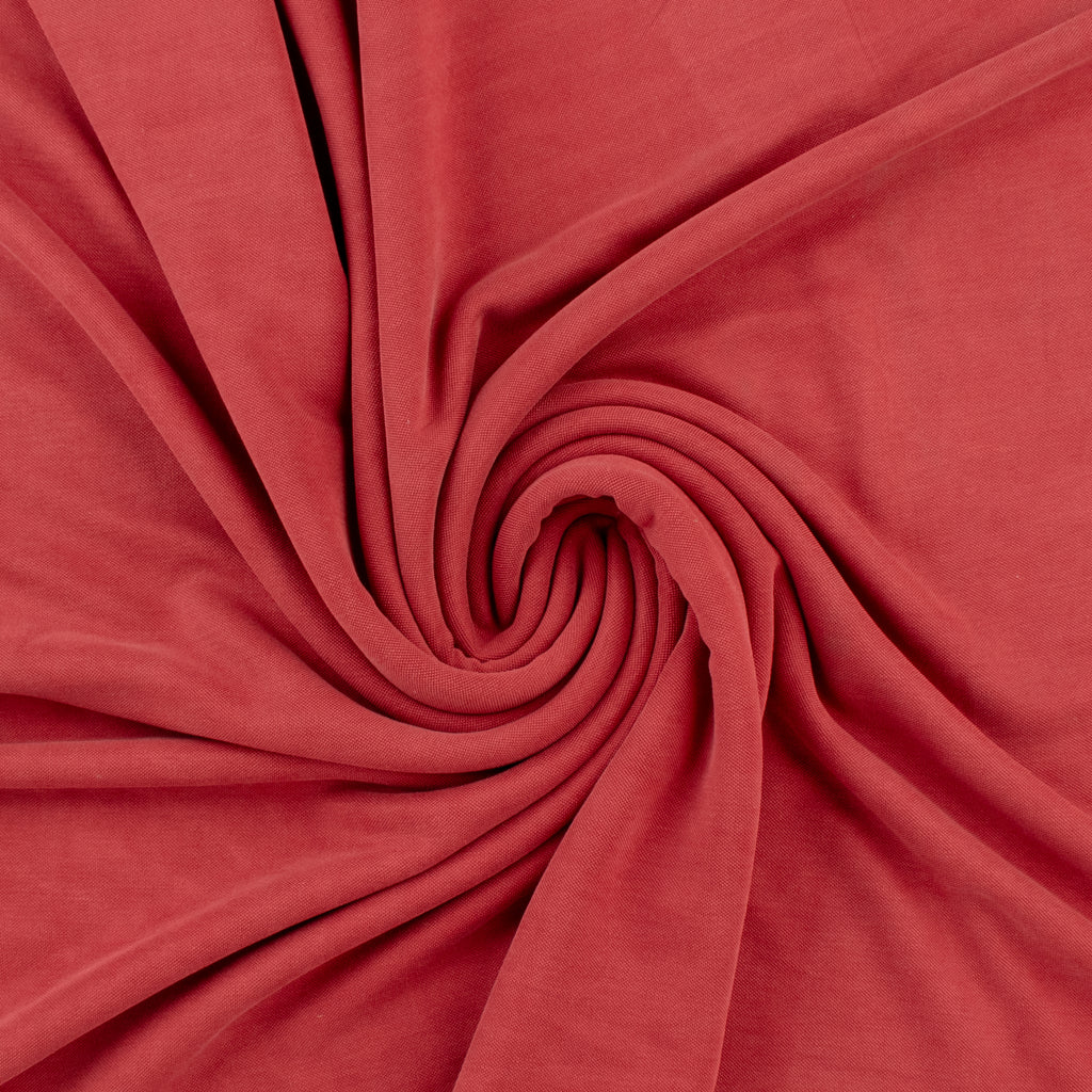 This solid knit is soft and comfortable which gives a fluid drape. It is ideal for the creation of dresses, skirts, sweaters, camisoles and wide legged pants.
