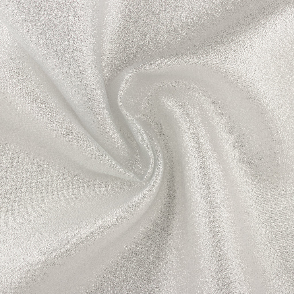 This light weight metallic crepe fabric has a fluid drape. Perfect for blouses, shirts, dresses with lining, skirts with lining and scarves.