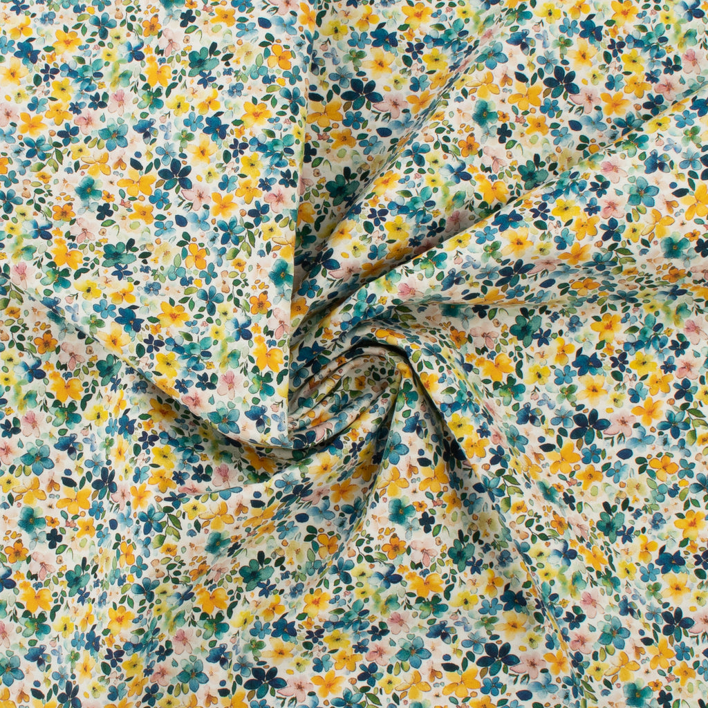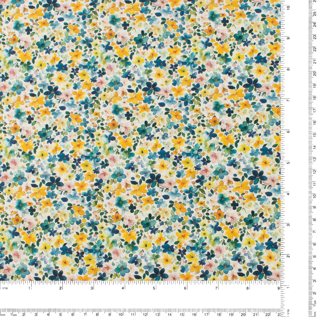 Printed Cotton - Lillibet Floral - 006 - Teal/Yellow