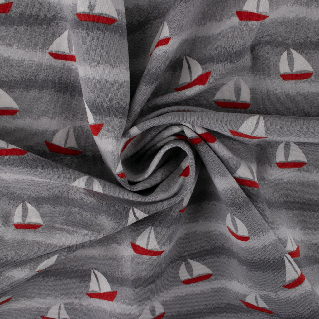 Printed French Terry - IMA-GINE F22 - Sailboat - Grey