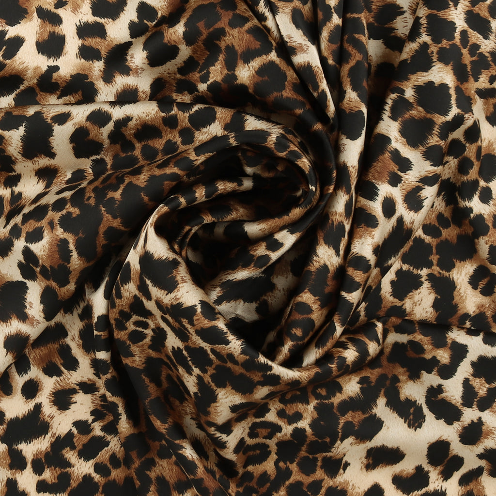 This printed satin fabric is perfect for creating elegant blouses, dresses, lingerie and shirts.