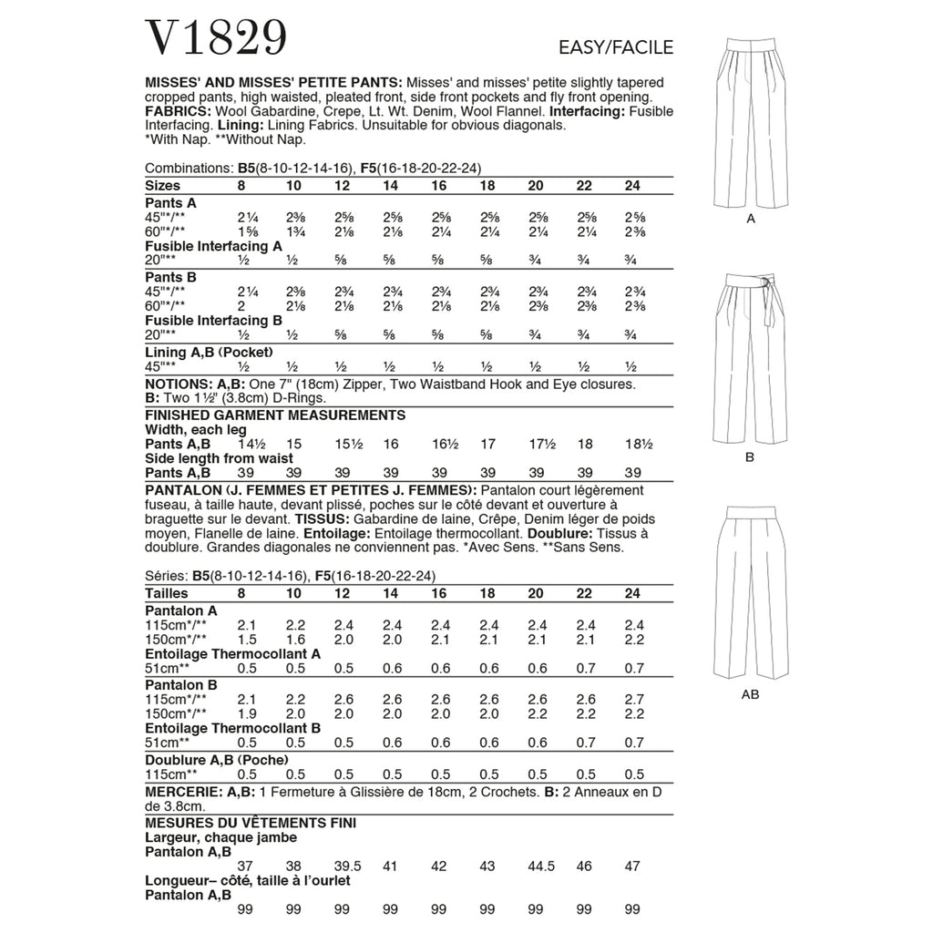 V1829 Misses' and Misses' Petite Trousers (16-18-20-22-24)