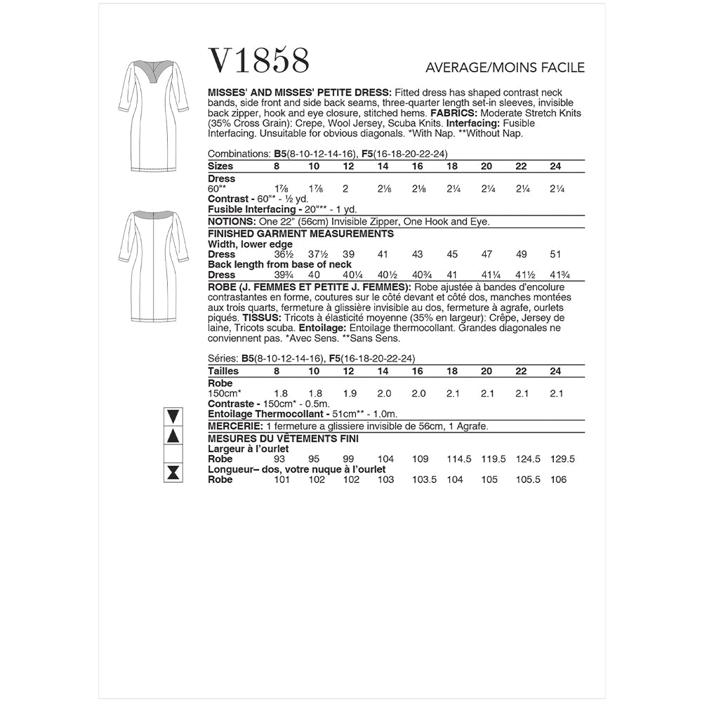 V1858 Misses' and Misses' Petite Dress (16-18-20-22-24)